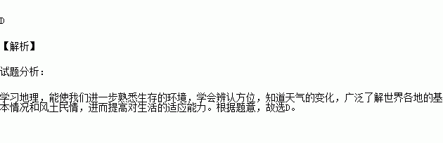 ①能进一步熟悉我们的生活环境 ②确认方位 ③知道天气变化 ④了解世界
