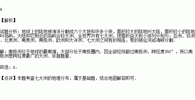 A.南美洲 B.南极洲 C.亚洲 D.大洋州