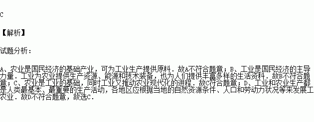D.工业和农业生产都是人类最基本、最重要的生产活动