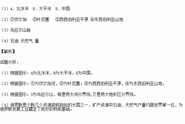 (4)俄罗斯是少数几个资源能够自给的大国之一,矿产资源中_________._________产量均居世界第一位,为俄罗斯发展工业奠定了良好的物质基础。目前俄罗斯的_________工业非常发达,就是因为有了这些丰富的矿产资源。