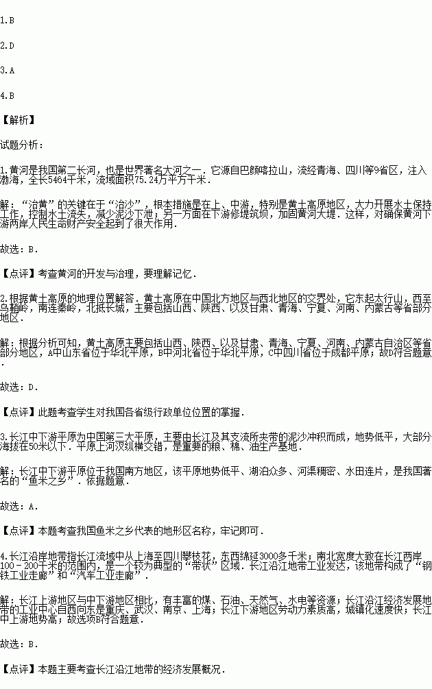“黄河含沙世界首,综合治理日加强;亚洲第一长江长,‘鱼米之米’工业强”.据此回答各题.