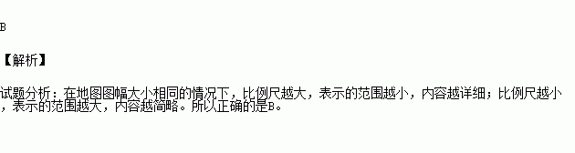 A.范围越大,图上内容越详细 B.范围越小,图上内容越详细