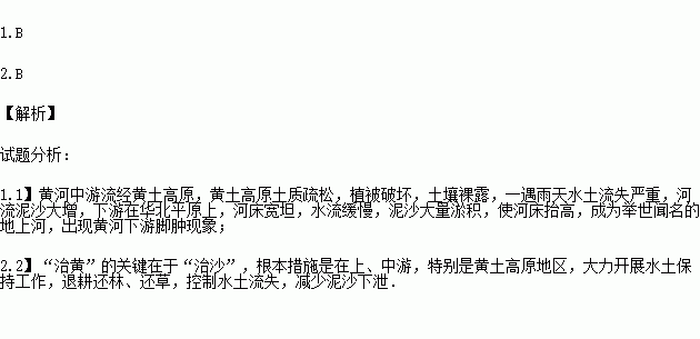 1. 黄河下游“脚肿”(地上河)形成的原因主要是: