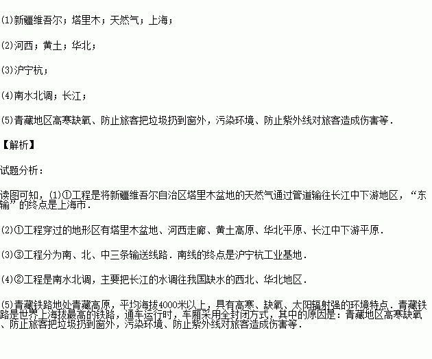 (1)¢Ù¹¤³ÌÊǽ« ×ÔÖÎÇø ÅèµØµÄ ͨ¹ý¹ÜµÀÊäÍù³¤½ÖÐÏÂÓεØÇø£¬¡°¶«Ê䡱µÄÖÕµãÊÇ ÊС£