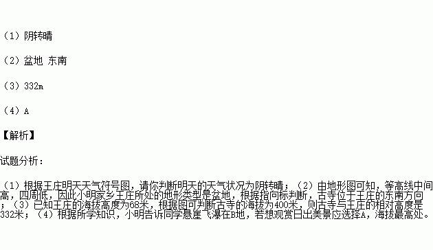 (1)根据王庄明天天气符号图,请你判断明天的天气状况:__ ____;