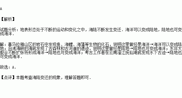 A.喜马拉雅山区的岩石中发现海洋生物的化石