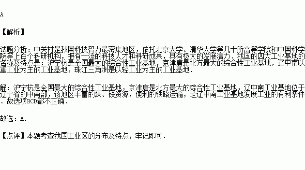 D.京津唐工业基地﹣﹣是我国最大的综合性工业基地