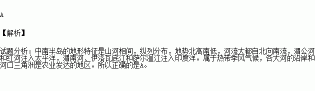 有关中南半岛的叙述,正确的是: