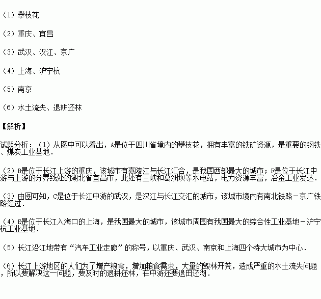 £¨1£©³¤½Ñذ¶µØÇø¹¤Òµ·¢´ï£¬Í¼ÖÐAÊÇÒÔ ¡¢ÁùÅÌˮΪÖÐÐĵĸÖÌú¡¢ÃºÌ¿»ùµØ¡£