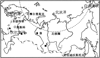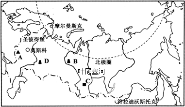 (2)读图可得:A是库尔斯克铁矿,B是秋明油田,C是库兹巴斯煤矿,D是伏尔加-乌拉尔油田;