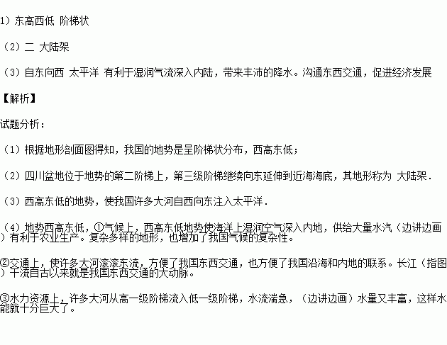 (2)四川盆地位于第_____级阶梯上;第三级阶梯继续向东延伸到近海海底,其地形称为 ________________ .