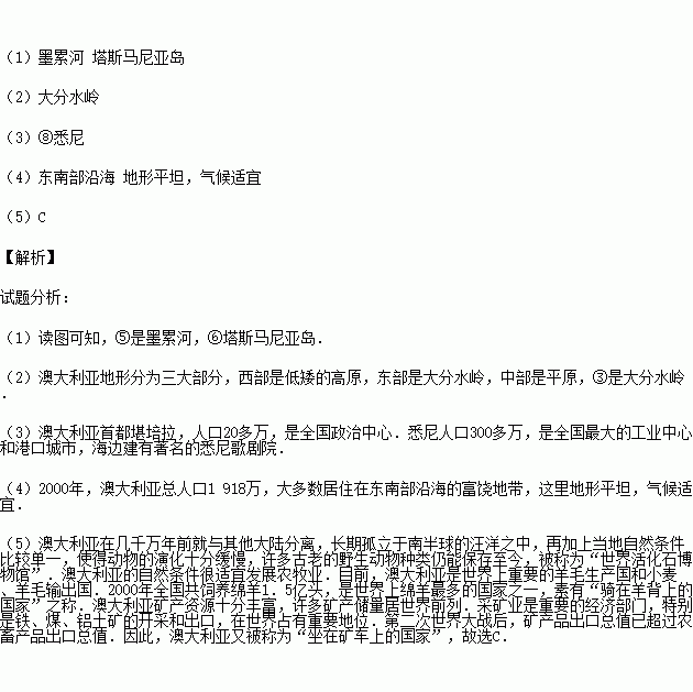 (4)澳大利亚人口和城市主要分布在 ,原因是_____________。