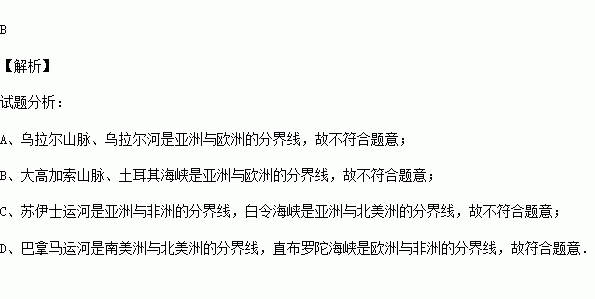 C.苏伊士运河、白令海峡 D.大高加索山脉、土耳其海峡