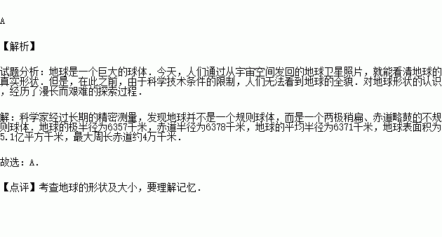 C.表面积约为15.1亿平方千米 D.是赤道扁二极鼓的球体