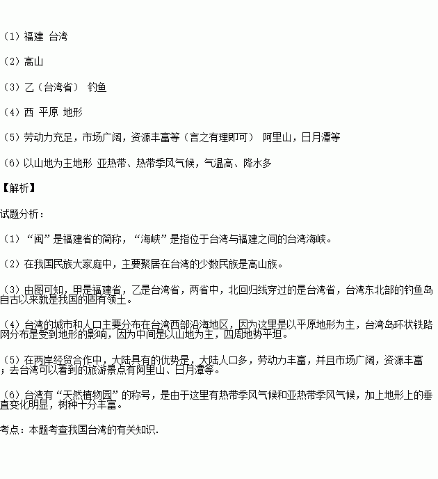 £¨6£©Ì¨Í嵺ÓС°ÑÇÖÞÌìȻֲÎïÔ°¡±Ö®³Æ£¬Ê÷Öַḻ£¬Ö÷ÒªÔÒòÊÇ ¡¢ ¡££¨Ìáʾ£º´ÓÆøºòºÍµØÐη½Ãæ·ÖÎö£©