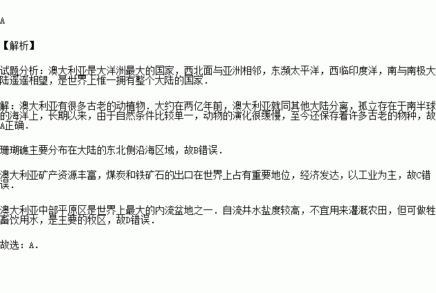 对澳大利亚判断正确的是( )