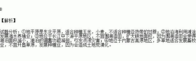 A.①地平原利用肥沃的黑土种植甘蔗