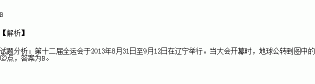 第十二届全运会于2013年8月31日至9月12日在辽宁举行。当大会开幕时,地球公转到图中的( )附件。