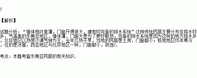 “墙体相对单薄,门窗开得较大,建有较完备排水系统”,这种传统民居主要分布在( )