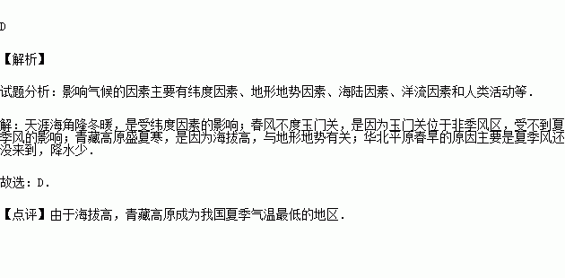 C.青藏高原盛夏寒﹣与地形的影响有关
