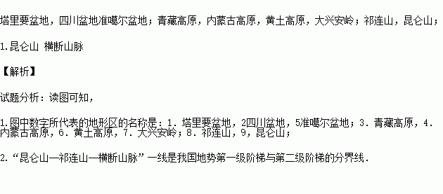 2.“山——祁连山——山脉”一线是我国地势第一级阶梯 与第二级阶梯 的分界线。