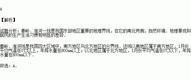 北方地区和南方地区的天然界线是( )
