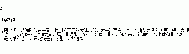 C.我国位于北半球和东半球
