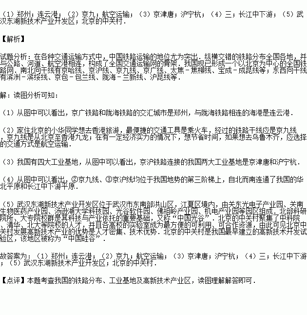 (1)京广铁路和陇海铁路的交汇城市是 ,与陇海铁路相连的海港是 .