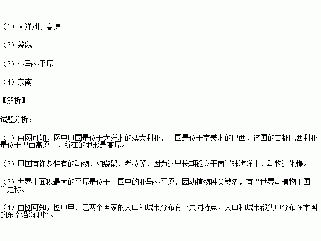 (4)甲、乙两个国家的人口和城市分布有个共同特点:人口和城市都集中分布在本国的_________沿海地带。