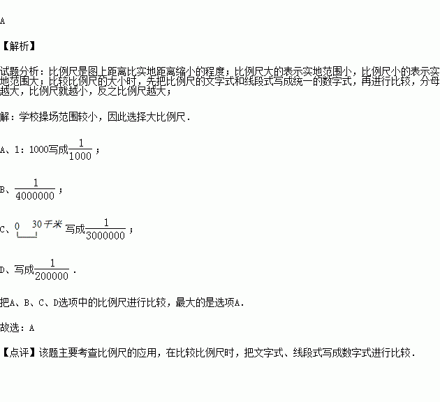 D.比例尺等于图上距离除以实地距离