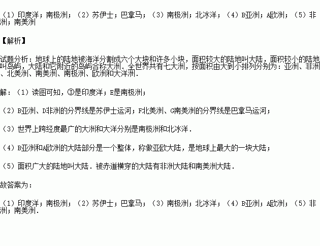 (5)赤道穿过的大陆是 大陆和 大陆.