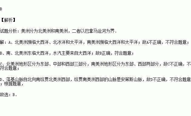 有关南、北美洲的叙述正确的是( )