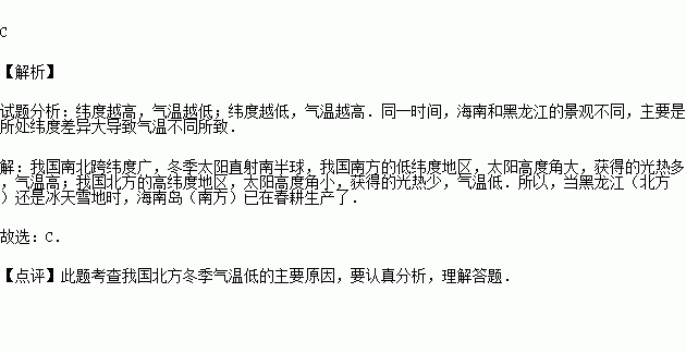 当黑龙江还是冰天雪地时,海南岛已是春耕大忙了,这是由于我国的( )