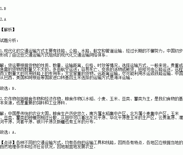 1.中国从上述国家进口转基因玉米选择的运输方式是( )
