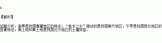 A.青藏地区——高寒气候 B.西北地区——温暖湿润