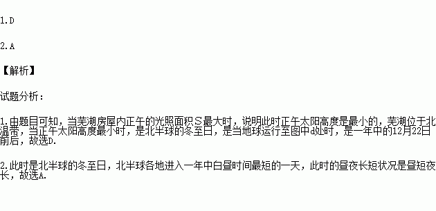 1.芜湖房屋内正午的光照面积S最大时,地球公转的大致位置和日期是