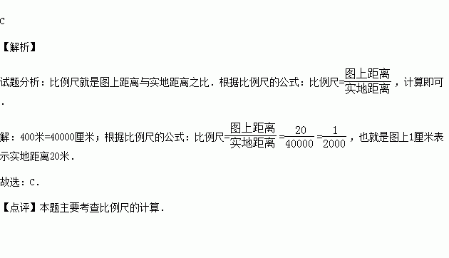 衡阳市某中学地理兴趣小组拟绘制一幅校园平面图.图书馆与操场间的实地距离为400米,如绘到图上的距离为20厘米,则同学们采用的比例尺应为( )
