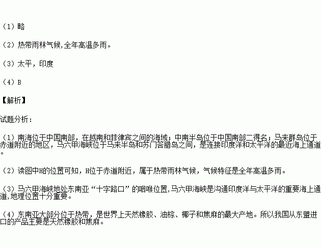 (2)H地主要气候类型是 ,其气候特征是 。