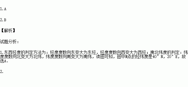 1.图中M点的经纬度是