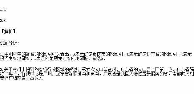 1.ÏÂÁÐÊ¡¼¶ÐÐÕþÇøÓòÂÖÀªÍ¼ÖУ¬±íʾÖ÷°ìÊ¡·ÝµÄÊÇ