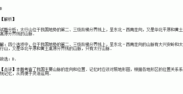 位于我国地势的第二、三级阶梯分界线上,呈东北﹣西南走向,又是华北平原和黄土高原分界线的山脉是( )