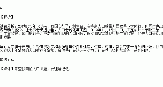 ①社会劳动力缺乏 ②劳动力素质低 ③社会养老负担加重 ④经济发展下滑.