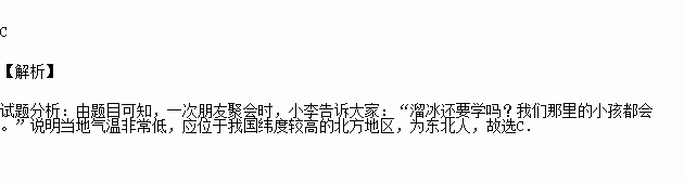 一次朋友聚会时,小李告诉大家:“溜冰还要学吗?我们那里的小孩都会。”请问小李应该是哪里的人( )