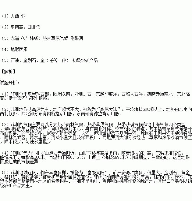 (3)非洲气候类型以_____________(特殊纬线)为中心,呈南北对称分布,其中分布面积最广的是_________。尼罗河和刚果河相比较,流量较大的是___________。