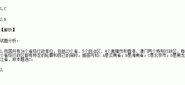 A.海南 B.黑龙江 C.台湾 D.云南