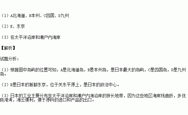 (2)读图日本首都的名称:E