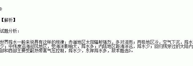(1)左图中字母表示的四种气候类型都为 带气候,判断的依据是它们都主要位于 。