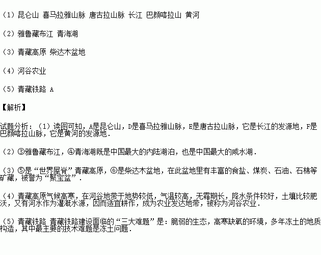 (5)在该地区有世界海拔最高、线路最长的高原铁路_______铁路,修筑该铁路需要克服的主要困难是( )