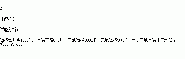 甲地海拔1000米,乙地海拔500米,有关同纬度的甲、乙两地气温的叙述正确的是( )