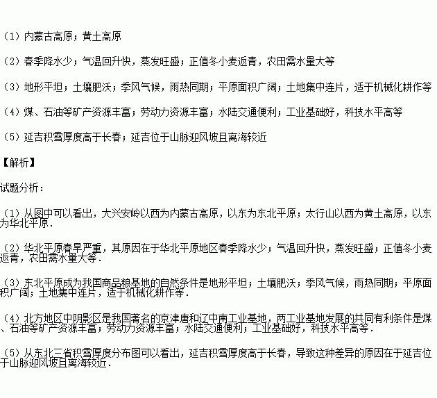 (3)根据所学知识,分析东北平原成为我国商品粮基地的自然条件。